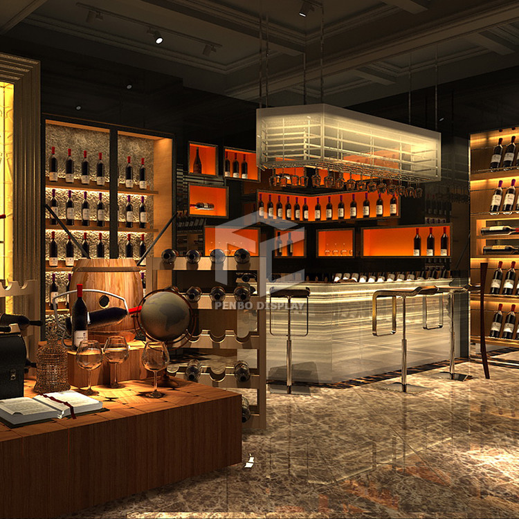 Nombre | El contador al por menor del almacenamiento de estante de exhibición de pared del vino atormenta los gabinetes de exhibición de madera del vino |